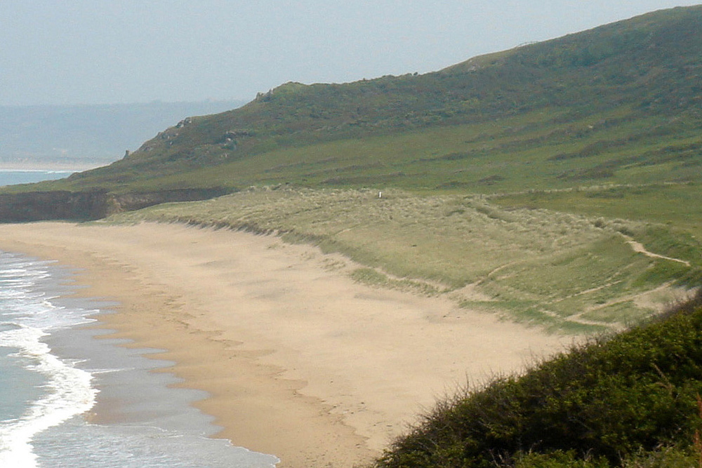 Au Nord, au-delà de la plage de Siouville un important cordon de dunes holocènes borde la plage de Biville jusqu’à Vauville. Derrière ce cordon s’étend un vaste champ de dunes montant sur le versant jusqu’à 105m d’altitude.