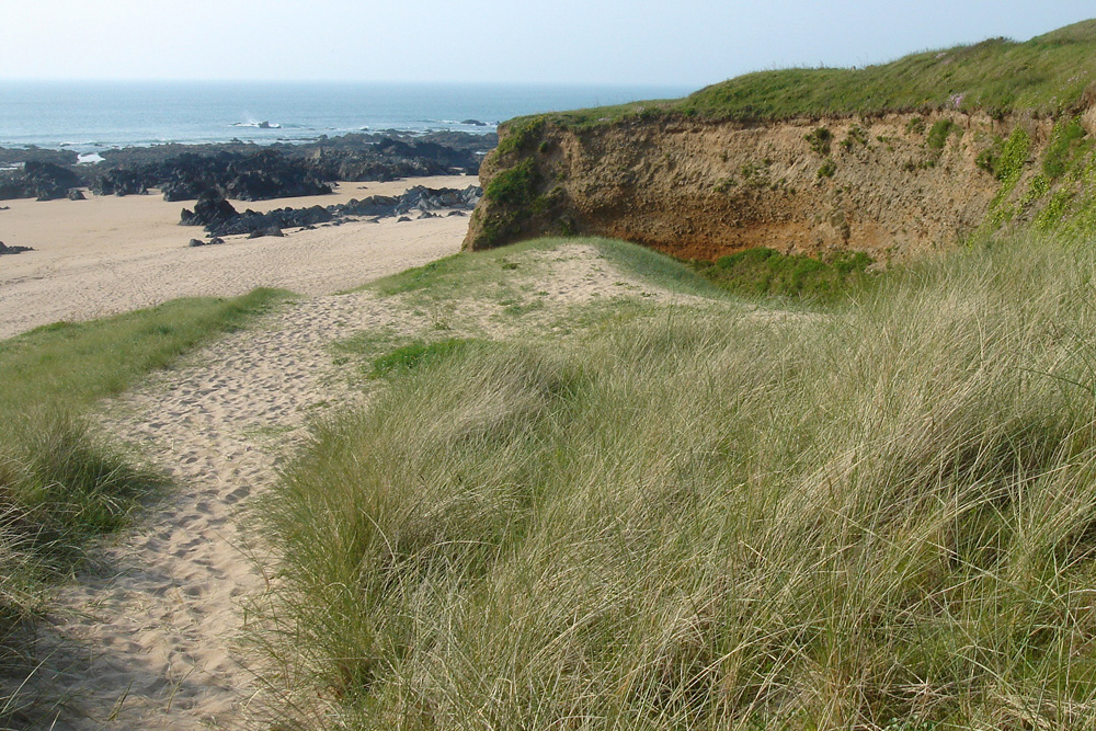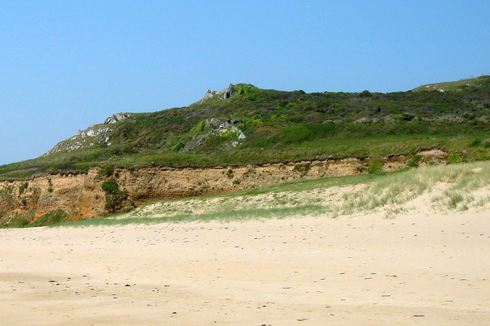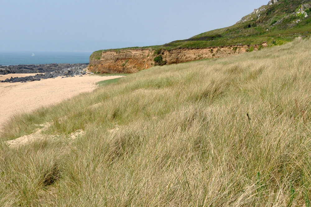 La falaise façonnée dans le head weichsélien lors du retour de la mer disparaît derrière le cordon dunaire.