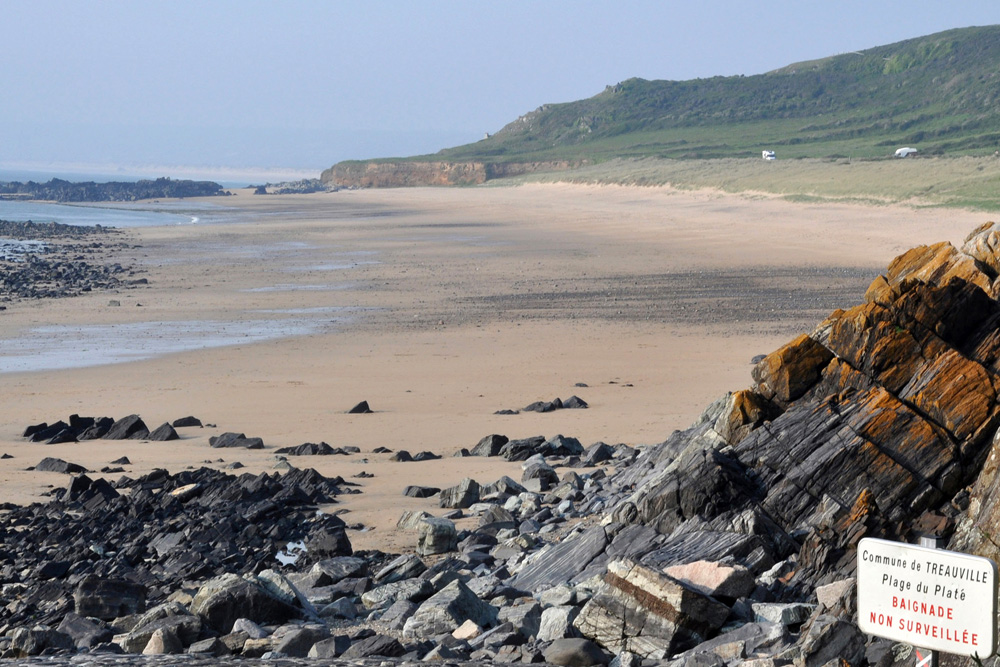 Au-delà de la plage du Platé, bordée par un cordon dunaire, une fausse terrasse se développe au pied du Mont Saint-Pierre. Elle correspond à des dépôts quaternaires qui s’avancent vers la mer.
