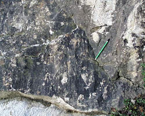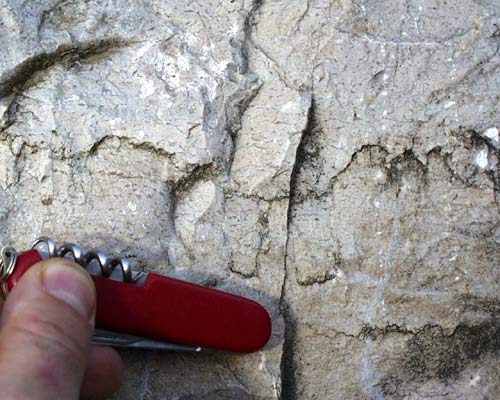 au niveau du crayon. Sous le crayon apparaît le calcaire clair à