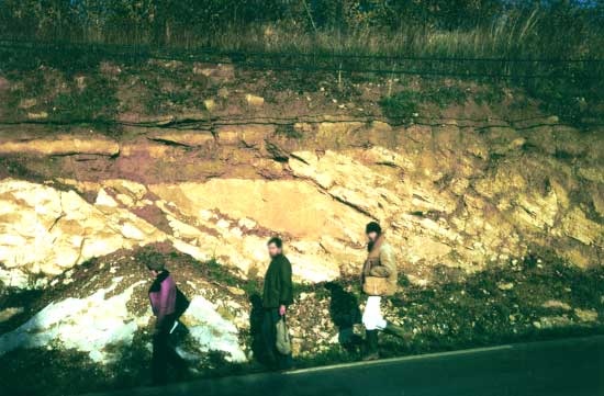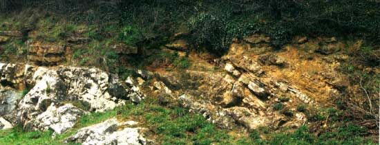 | Activités envisageables : Mesure de pendage, de rejet de la faille, de datation relative. |