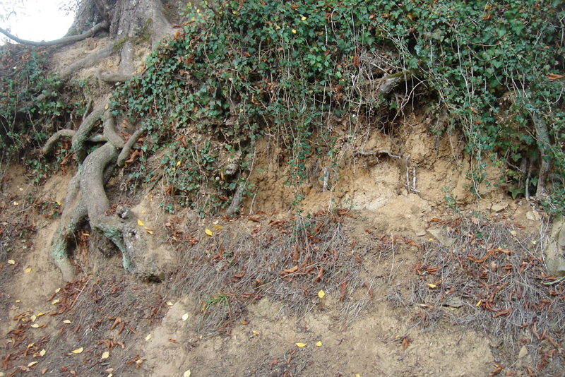 Le lœss affleure aussi à une centaine de mètres du château du Bas de Vieux, dans le talus du chemin qui remonte le versant de la rive droite, au-delà du gué de la Guigne.