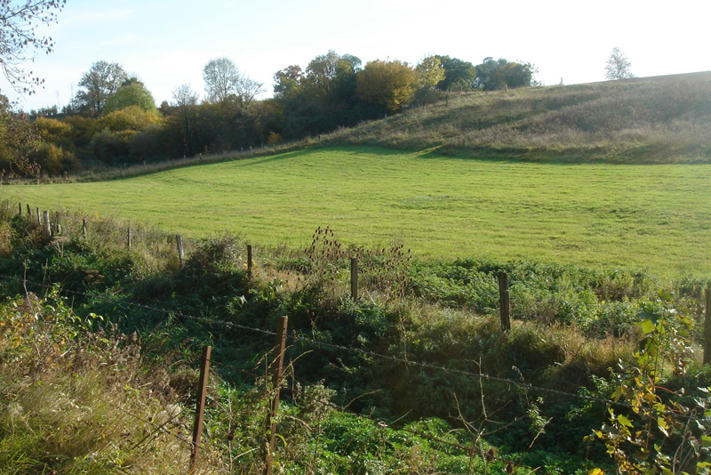 Exposé au Nord-Est et en pente douce, le versant de la rive droite de la Guigne présente une morphologie adoucie par le dépôt de lœss weichselien.