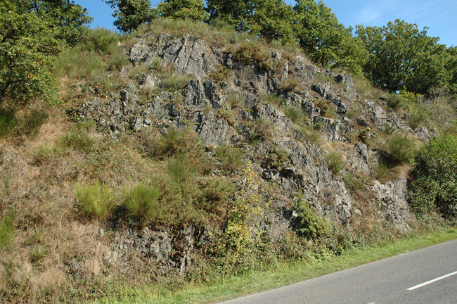 Affleurement situé à la sortie de Pont-Erembourg juste après le pont de chemin de fer sur la route D115