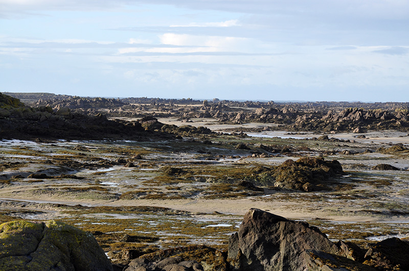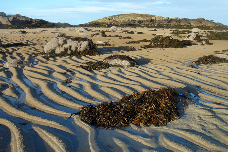 Entre les îlots rocheux, de grandes étendues sableuses découvertes à marée basse exposent des figures sédimentaires, telles que rides d’oscillation, rides de courant, figures d’écoulement…