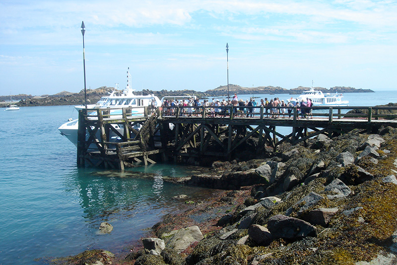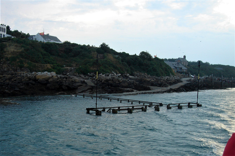 La grande différence de hauteur entre la marée haute et la marée basse a nécessité la construction d’un appontement à plusieurs niveaux. Seuls les niveaux supérieurs et intermédiaires sont visibles sur cette photo.