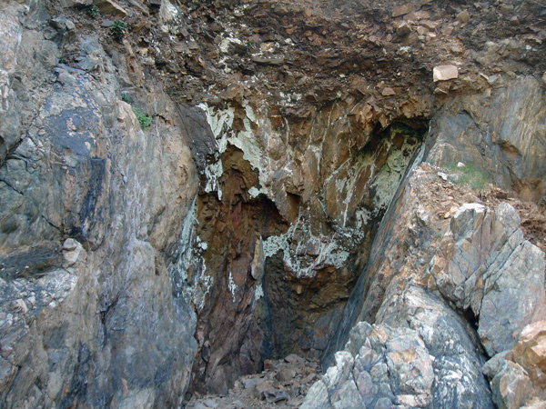 L’érosion a créé dans les gneiss une sorte de couloir correspondant à l’emplacement du filon de minette. |