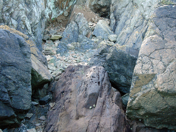 Filon de lamprophyre dans le versant abrupt du fond de l’anse du Cul-Rond (secteur sud)