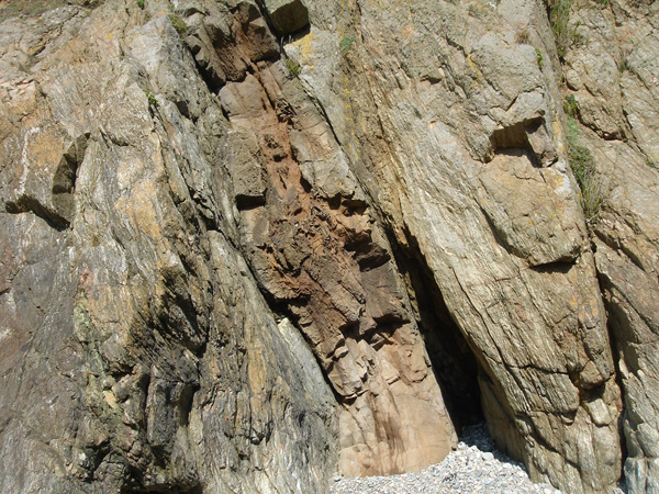 Filon de lamprophyre (minette) dans le flanc nord de l’anse du Cul-Rond.