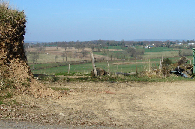 Le chemin d’accès au front de taille est situé en face de l’entrée de la ferme voisine du château.