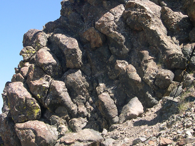 L’empilement de formes en boules moulées les unes sur les autres caractérise une mise en place de la coulée de lave sous l’eau.