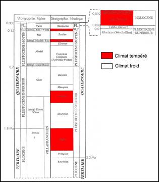 prcdemment sur lÕchelle chronostratigraphique du Quaternaire (doc.2) prsentant la succession des priodes