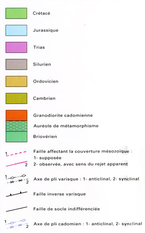 (Les indices concernant le flysch briovérien et la chaîne cadomienne peuvent aussi être recherchés dans tout le secteur compris entre Athis et Caen.)
